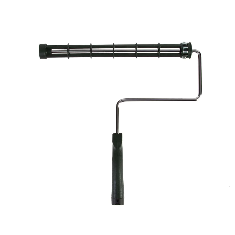 Wooster's Sherlock Roller Frame has a quick-release retaining spring to prevent roller slippage, yet allows for an easy, one-rap removal. In addition, The frame's internal bearings keep the durable, fiberglass-reinforced nylon case spinning smoothly.