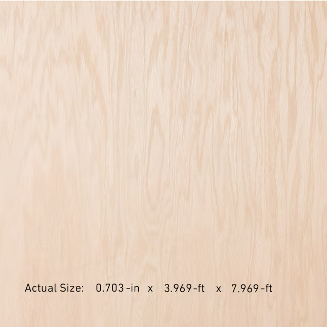 - Dimensions Actual Length (Feet) 7.969 Common Thickness Measurement 3/4-in Actual Thickness (Inches) 0.703 Common Width Measurement 4-ft Actual Width (Feet) 3.969 Industry Standard Min Thickness (Inches) 0.75 Common Length Measurement 8-ft Industry Standard Minimum Length (Feet) 8 Common Measurement (W x L) 4-ft x 8-ft Industry Standard Minimum Width (Feet) 4