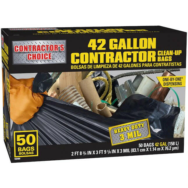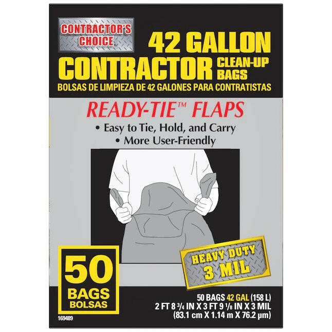Contractor's Choice Contractor 50-Pack 42-Gallon Black Outdoor Plastic Construction Flap Trash Bag
