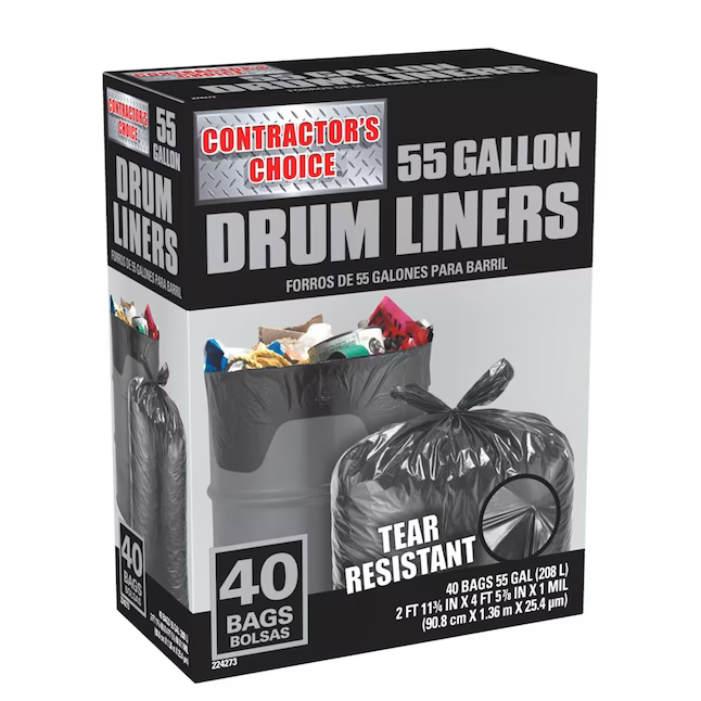 Contractor's Choice black drum liners made from high quality polyethylene that is tear resistant. The strength, durability, and large capacity of these bags make clean up easy.