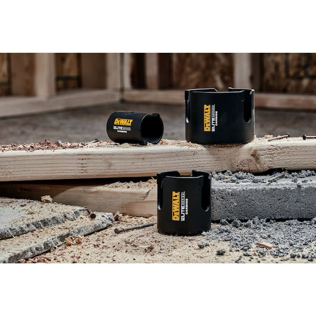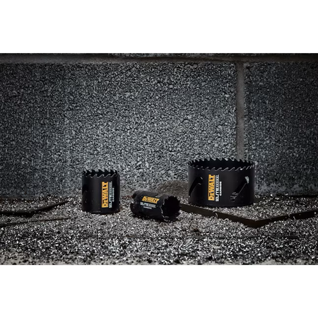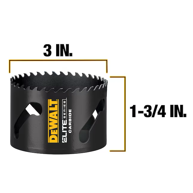 The DEWALT ELITE SERIES TM Metal Cutting Carbide Tipped Hole Saws last up to 3X longer vs Milwaukee® and feature advanced welding technology to increase bond strength and retain carbide tips. The carbide tipped cutting edge cuts through a variety of demanding materials such as wood with nails, thick metal, and stainless steel. An aggressive tooth design penetrates hard metals and removes chips efficiently to reduce heat buildup. The large, continuous slot provides multiple leverage points for easy plug removal.