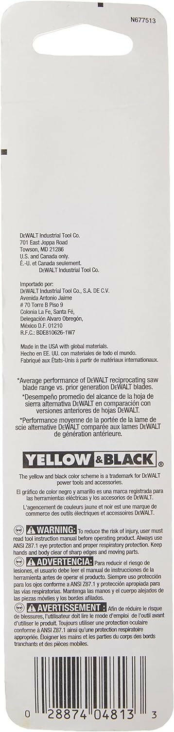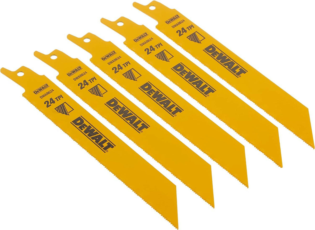 DeWalt Reciprocating Saw Blades, Straight Back, Bi-Metal, 6-Inch 24 TPI, 5-Pack