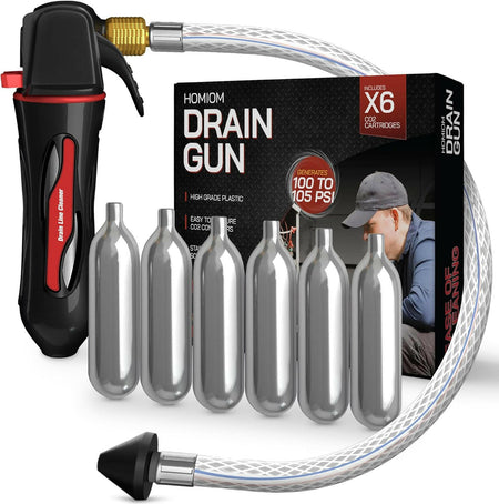 Homion Air Conditioner Drain Line Cleaner With Flexible Hose - Includes 6 Co2 Cartridges