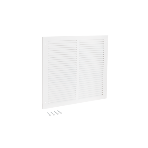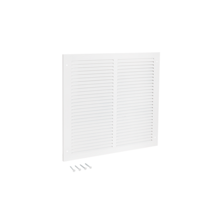 The EZ-FLO Return Air Grille is designed for wall or ceiling openings to help improve air circulation by extracting air from a room. It is made of heavy-duty steel with a white powder-coated finish that resists flaking and rust for a longer-lasting performance. It fits a rough duct opening 10 inches wide by 10 inches long. It features slotted vanes that are non-adjustable and in a fixed position. Includes (4) screws for easy installation. It is important to check the duct opening size before purchasing a duct or vent cover.
