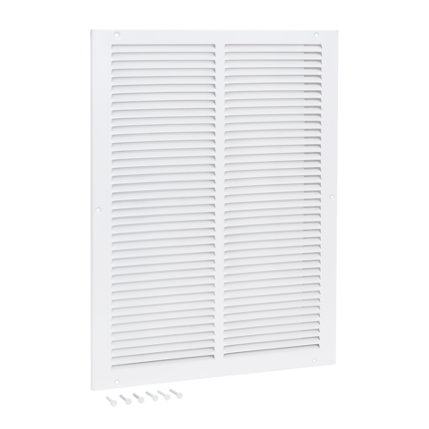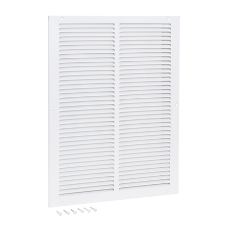 The EZ-FLO Return Air Grille is designed for wall or ceiling openings to help improve air circulation by extracting air from a room. It is made of heavy-duty steel with a white powder-coated finish that resists flaking and rust for a longer-lasting performance. It fits a rough duct opening 14 inches wide by 20 inches long. It features slotted vanes that are non-adjustable and in a fixed position. Includes (6) screws for easy installation. It is important to check the duct opening size before purchasing a duct or vent cover.