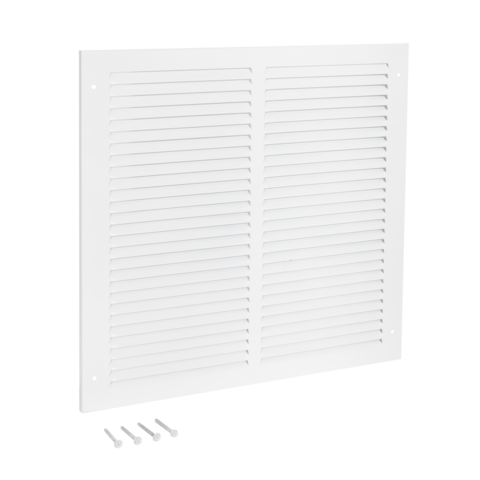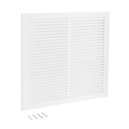 The EZ-FLO Return Air Grille is designed for wall or ceiling openings to help improve air circulation by extracting air from a room. It is made of heavy-duty steel with a white powder-coated finish that resists flaking and rust for a longer-lasting performance. It fits a rough duct opening 18 inches wide by 18 inches long. It features slotted vanes that are non-adjustable and in a fixed position. Includes (4) screws for easy installation. It is important to check the duct opening size before purchasing a duct or vent cover.