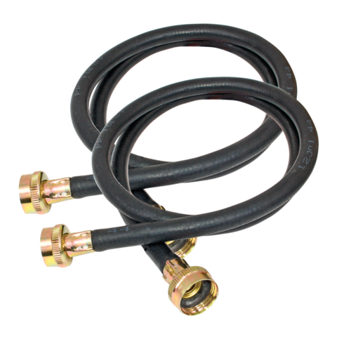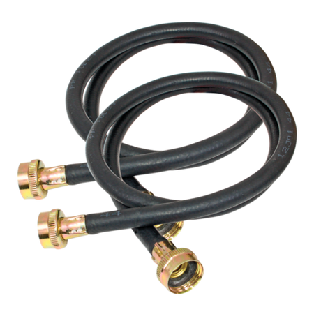 This Eastman® 4-foot Rubber Washing Machine Hoses come in a 2-pack presentation. They are made of black rubber with brass nuts to connect hot and cold water supply lines to the washing machine. The hoses are able to withstand high pressure and corrosion. The construction materials prevent leaking, kinking, and crimping. These durable heavy-duty hoses are reliable and have a long life span.