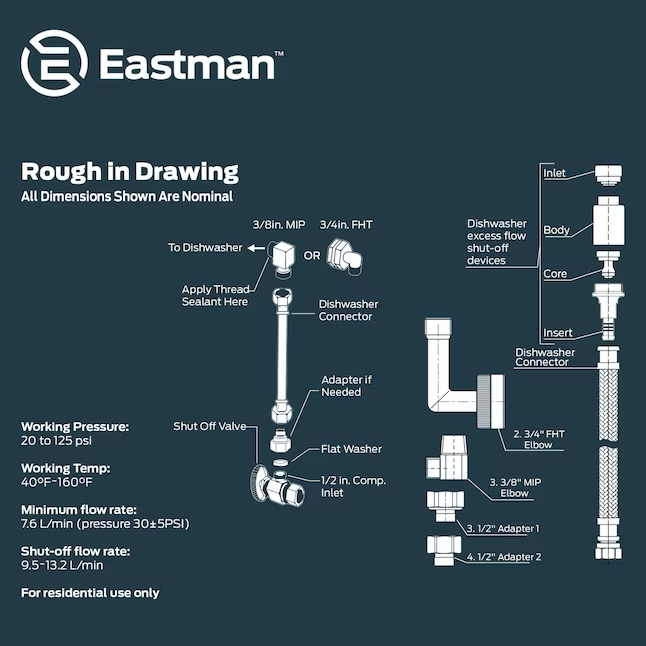 Eastman 6-ft 3/8-in Compression Inlet x 3/8-in Compression Outlet Braided Stainless Steel Dishwasher Connector