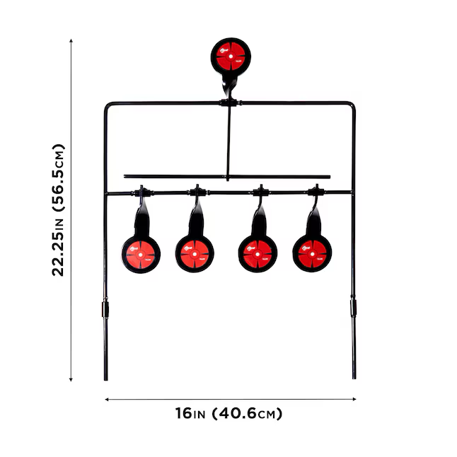 TARGET SHOOTING SYSTEM: 1/4-inch round powder coated steel frame finish folds easily for storage when not in use and measures 15.75-inches wide x 22.25-inches tall.