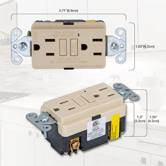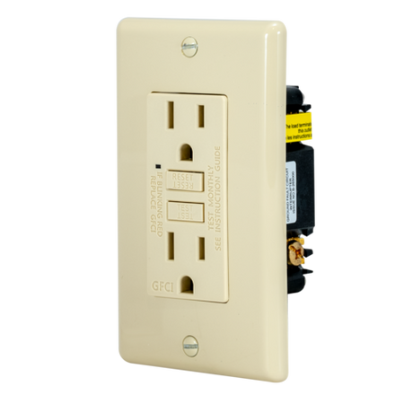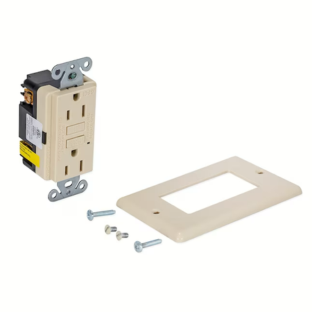 - Package Contents (1) 15Amp ivory GFCI receptacle (1) 4.59 in. x 2.76 in. ivory MIDI wall plate and (2) screws