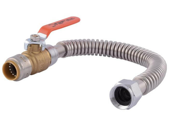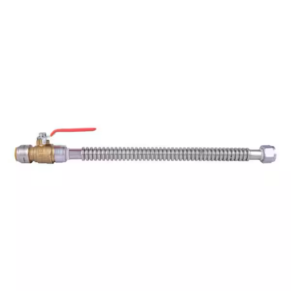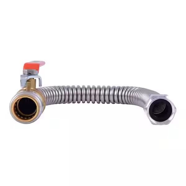 SharkBite Max stainless-steel corrugated flexible water heater connectors with ball valves allow you to work in tight spaces and easily connect water heaters with existing pipes that don't line up. Integrated ball valve allows the water heater supply to be shut off. Approved for use on electric or gas water heaters with a flue vent. Innovative design reduces the need for extra joints or fittings allowing for faster install time.