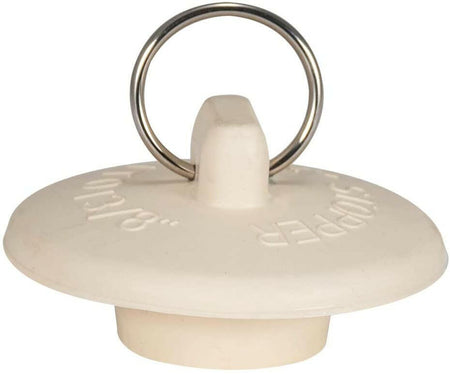 The EZ-FLO Fit-All Stopper is constructed from a highly-durable rubber for easy and long-lasting use. The stopper is designed to fit drains from 1 inch to 1-3/8 inch around. The white drain stopper features a metal ring for easy placement and removal from the drain without damage.