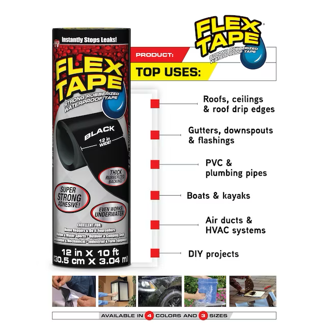 Flex Tape Black Waterproof Rubberized Duct Tape 4-in x 5-ft