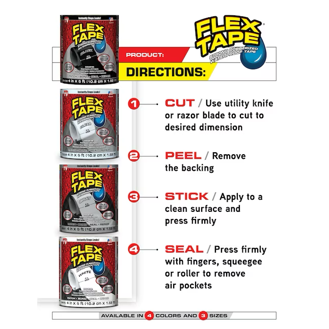 Instantly seals out water, air and moisture to create a super strong, flexible, watertight barrier