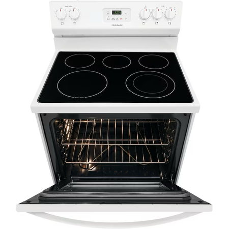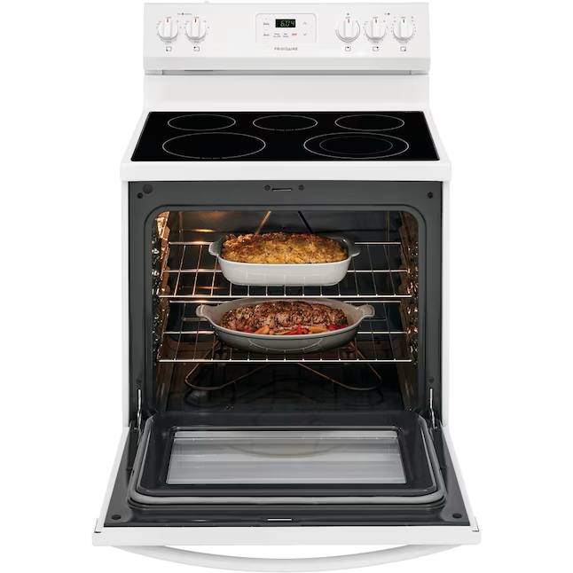 This Frigidaire 30 in. electric range lets you cook more at once with 5 electric elements and 5.3 cu ft capacity oven. Get meals on the table faster with a 3,000-watt element that boils water faster than the traditional setting. Keep food warm until everything and everyone is ready with the Keep Warm Zone, while flexible elements expand to meet your cooking needs - big or small.