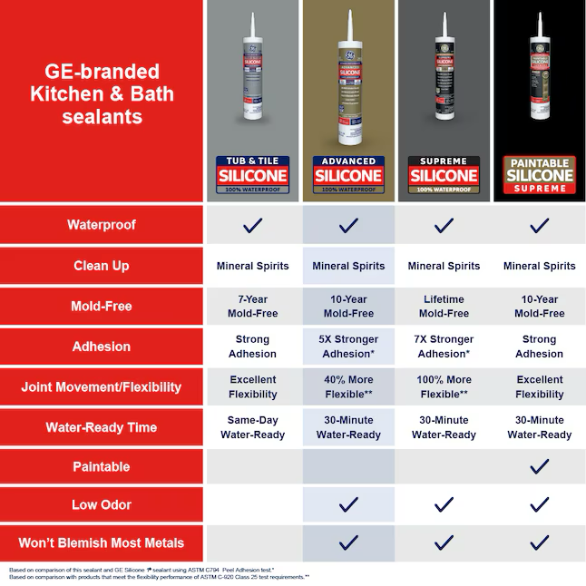 40% more flexibility than Class 25 sealants and has 5X stronger adhesion than GE Silicone 1 sealant