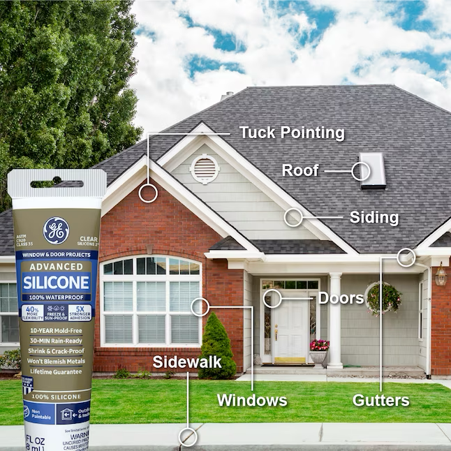 GE Advanced Silicone 2 Windows, Doors, Exteriors 2.8-oz Clear Silicone Caulk
