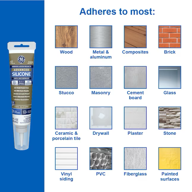 40% more flexibility than Class 25 sealants and has 5X stronger adhesion than GE Silicone 1 sealant