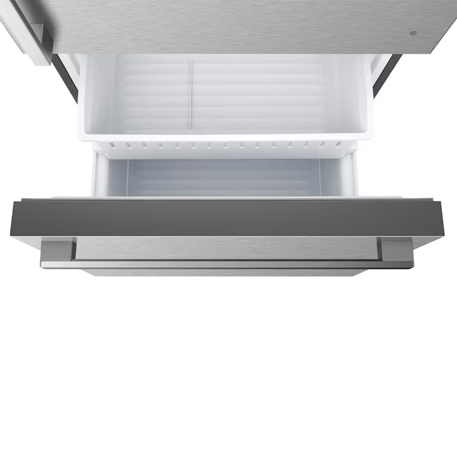 • Specifications ADA Compliant No Hidden Hinge Yes Air Filtration No Hub Required No Appliance Type Bottom-freezer refrigerator Humidity-Controlled Crispers 0 Built-In No Ice and Water Dispensers None Child Safety Locks No Ice Maker None Customizable No Ice Type N/A Dispenser Light No Ice/Water Location N/A Door Alarm No LED Light Yes Door Shelves 5.0 Door Style Flat Matching Replacement Water Filter Model No Door Texture Smooth Panel Ready No Dual Evaporator Cooling System No Pantry Drawer Standard Electronic Temperature Control Yes Professional Yes Fingerprint-Resistant No Refrigerator Interior Lighting LED Freezer Baskets 0 Reversible Door Yes Freezer Door Bins 0 Reversible Freezer Door Yes Freezer Door Shelves 0 See-Thru Door No Freezer Door Style Pull-out drawer Shelf Options Glass shelves Freezer Drawers 2 Snack/Deli Drawer No Freezer Light No Space-Saving In-Door Ice No Freezer Shelves 0 Temperature Controlled Drawer No Frost-Free Yes Voice Controlled No Gallon Door Storage Yes Water Filter Indicator No Garage Ready No Water Filtration No Handle Type Standard