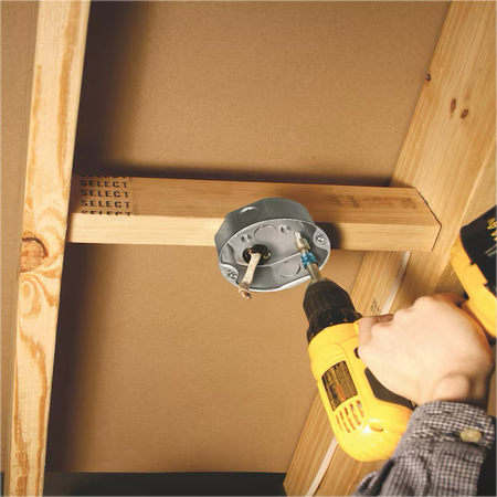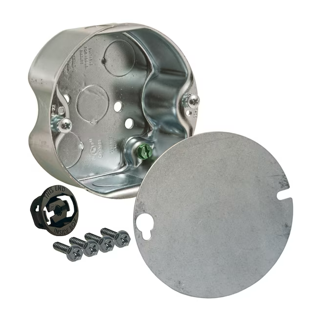 - Specifications Construction Type Drawn Number of Gangs 1 Cover Included Yes Number of Knockouts/Holes 5 Fire Rating in Hours N/A Old or New Work New work GFCI Receptacle Included No Package Quantity 1 Low Voltage No Use Location Ceiling Material Steel Weatherproof No Mounting Type In-ceiling