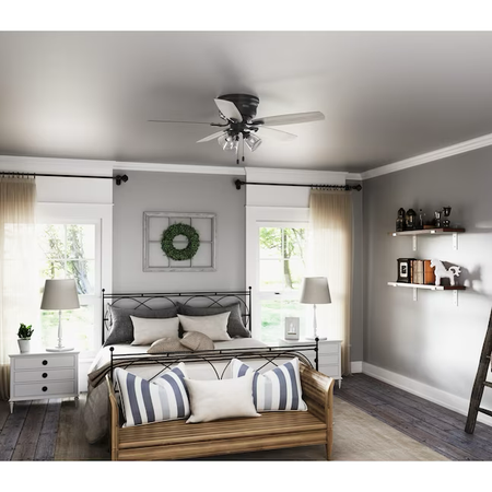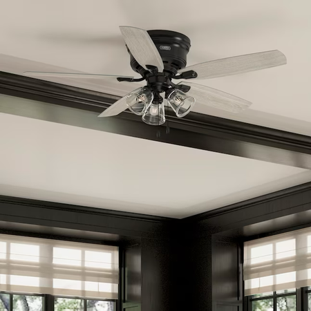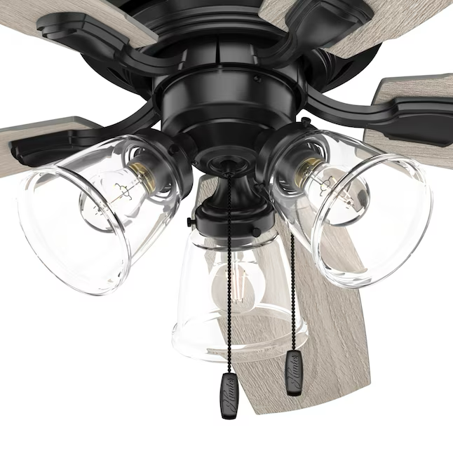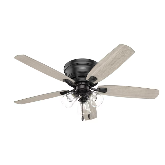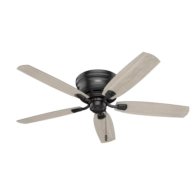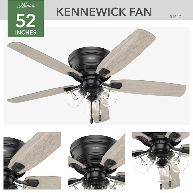 Hunter Kennewick 52-in Matte Black Indoor Flush Mount Ceiling Fan with Light (5-Blade)