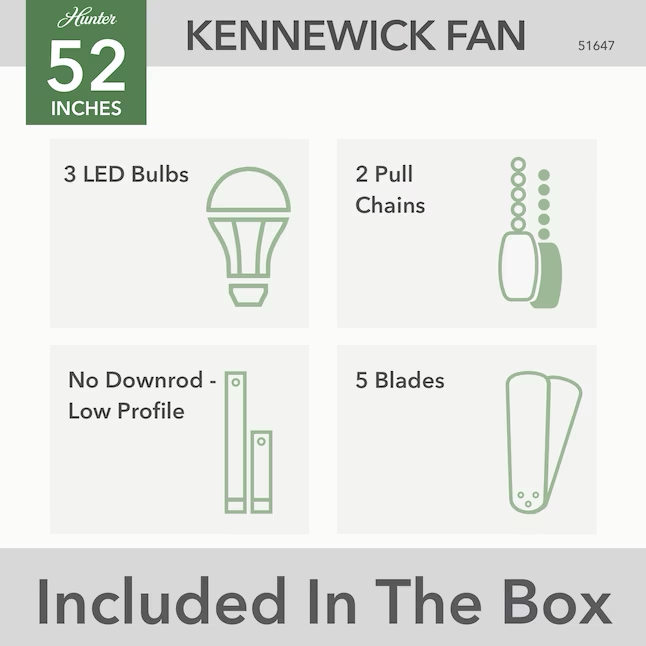 A classic design with modern innovations. The Kennewick ceiling fan with light is built with our SureSpeed Technology and a low-profile design to optimize high-speed cooling in your large rooms with low ceilings. Its timeless ceiling fan style makes it versatile for any indoor space.