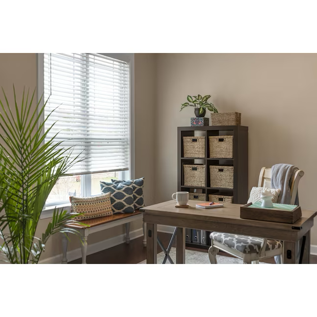 LEVOLOR Trim+Go 2-in Slat Width 59-in x 64-in Cordless White Faux Wood Room Darkening Horizontal Blinds