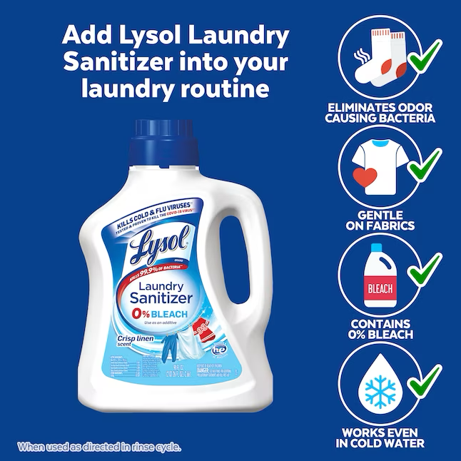 Simply add Lysol laundry sanitizer to your rinse cycle