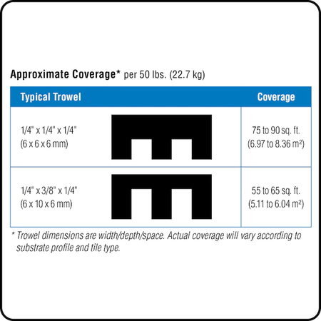 • Exceeds ANSI A118.4 and ANSI A118.11 bond strength requirements