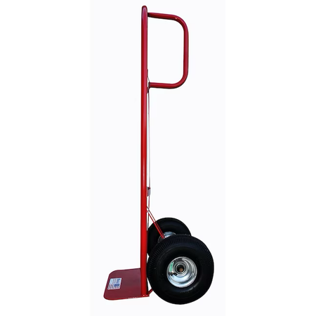 The Milwaukee D-handle is a heavy duty hand truck that has an 800 lb. load capacity. The D-handle allows for one hand operation of the truck. 10 In. pneumatic tires cushion the load and allow the truck to roll over uneven surfaces. 50 In. height is great for high-stacking applications. The hand truck has a powder coated finish and ships fully assembled. Milwaukee the name the pros trust.
