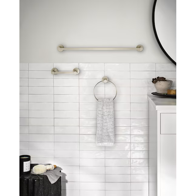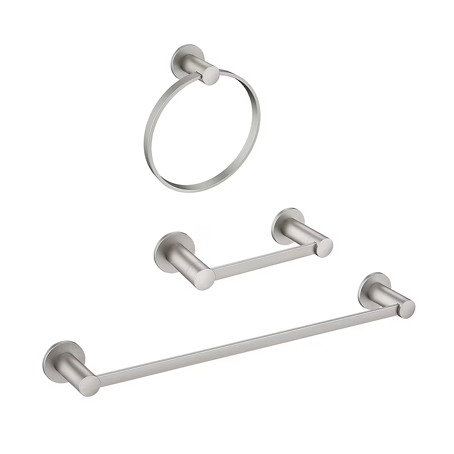 Moen 3-Piece Avri Brushed Nickel Decorative Bathroom Hardware Set with Towel Bar,Toilet Paper Holder and Towel Ring