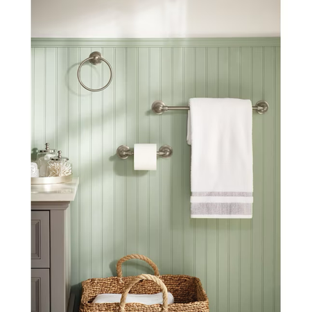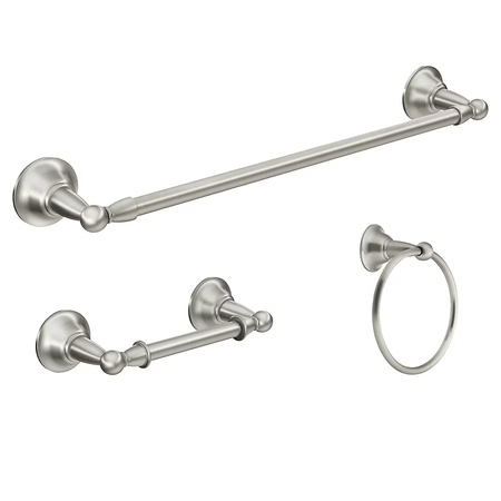 Moen 3-Piece Sage Brushed Nickel Decorative Bathroom Hardware Set with Towel Bar,Toilet Paper Holder and Towel Ring