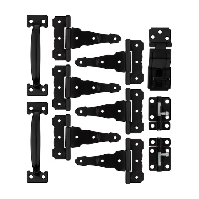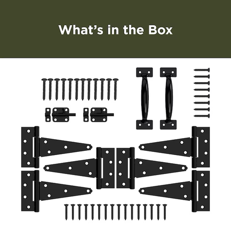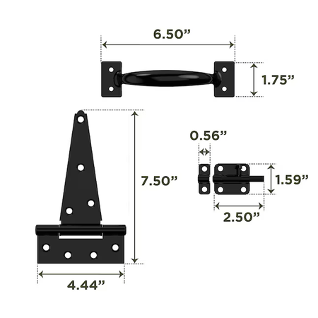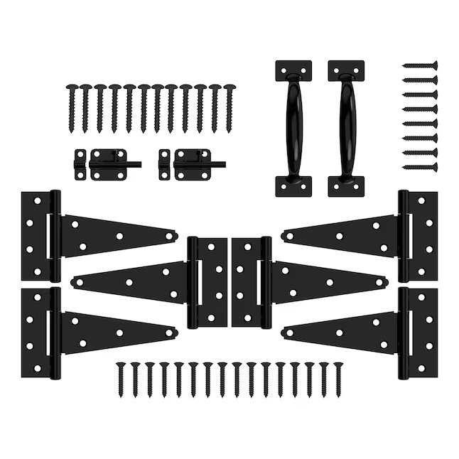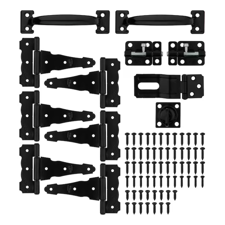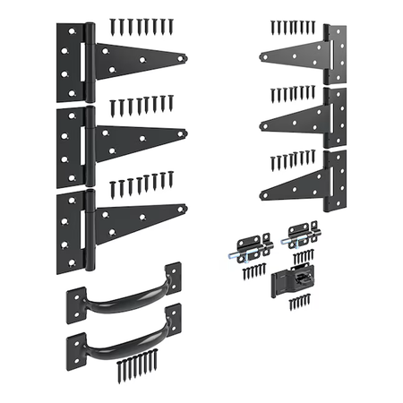 Kit includes 6 T-Hinges, 2 Barrel Bolts, 2 Pulls and 1 Swivel Staple Safety Hasp