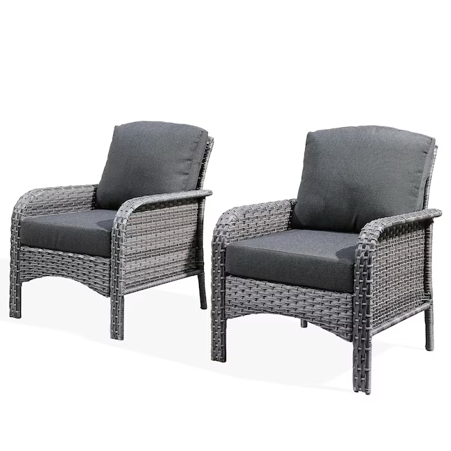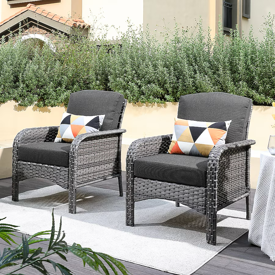 Ovios Set of 2 Wicker Black Metal Frame Stationary Conversation Chair with Black Cushioned Seat