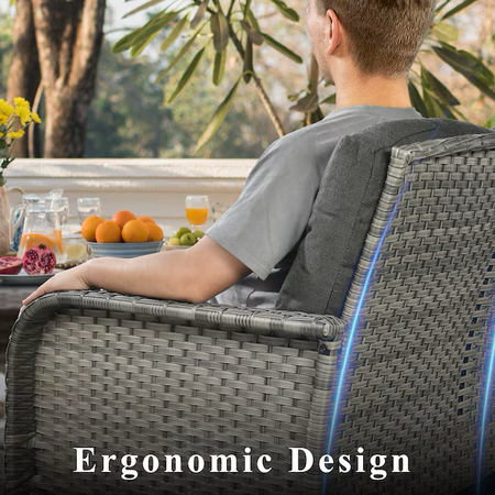 Wicker and cushion: handwoven wicker make the whole set much more sturdy, and the high density cushion give you strong lumbar support for better comfort