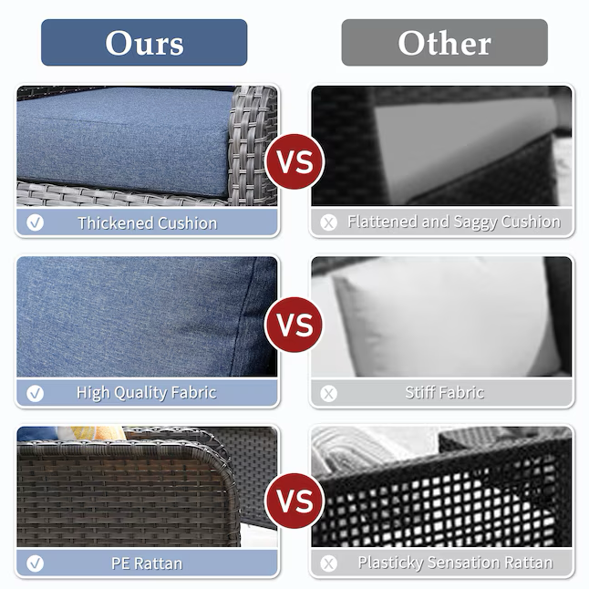 Wicker and cushion: handwoven wicker make the whole set much more sturdy, and the high density cushion give you strong lumbar support for better comfort