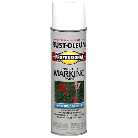 Rust-Oleum Professional Inverted Marking Spray Paint creates easy-to-read markings in bright, vivid colors
