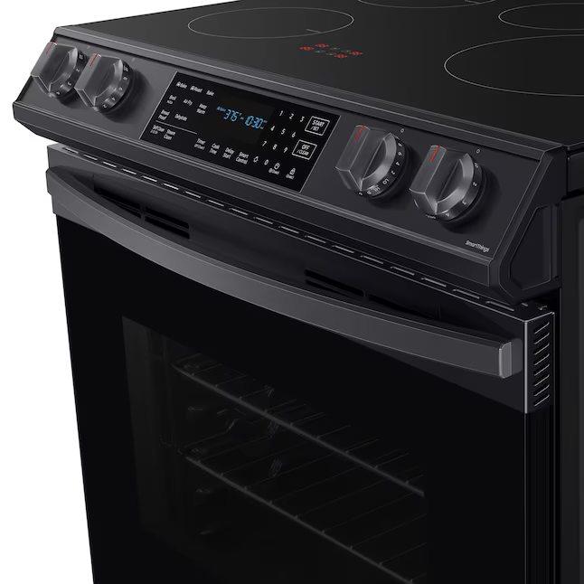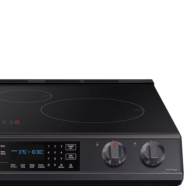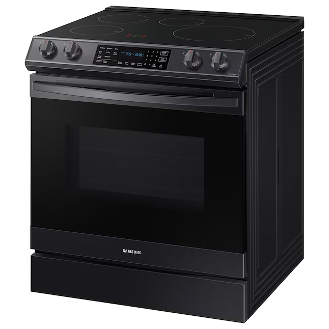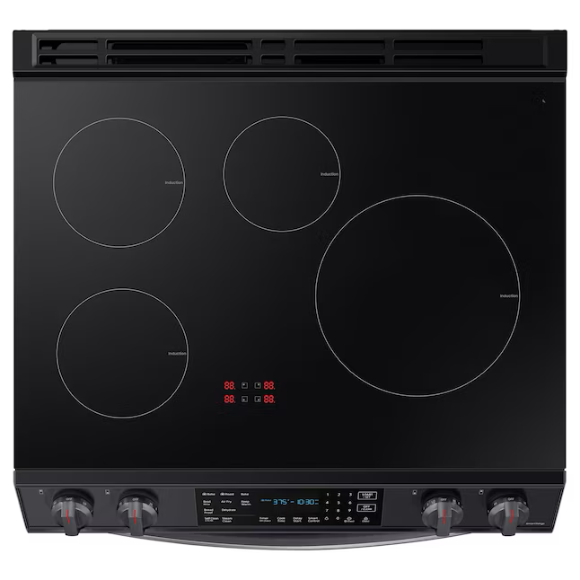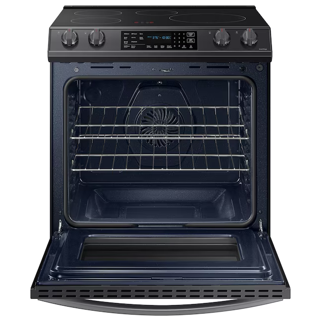 Samsung Rapid Heat Induction 30-in 4 Elements 6.3-cu ft Self and Steam Cleaning Air Fry Convection Oven Slide-in Smart Induction Range (Fingerprint Resistant Black Stainless Steel)
