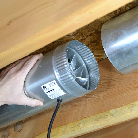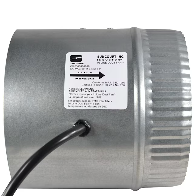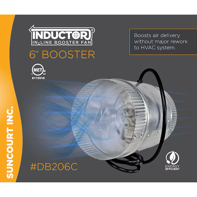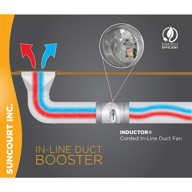 • The inductor 6-in corded in-line duct fan is engineered to overcome back pressure and boost air in forced air heating and cooling systems without upsetting the balance in the closed loop system
