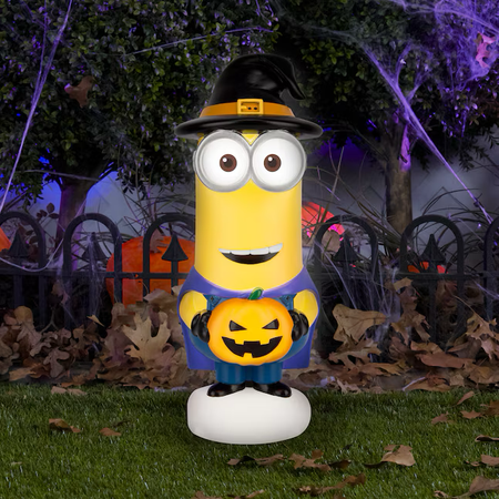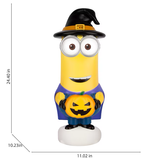 LIGHTED HALLOWEEN DECOR: 24-in H x 10-in W x 9.5-in D indoor/outdoor blow mold Minion Kevin in witch costume