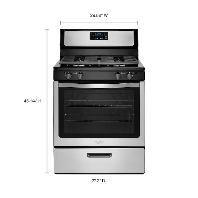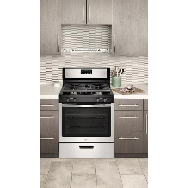 Whirlpool 30-in 4 Burners 5.1-cu ft Freestanding Natural Gas Range (Stainless Steel)