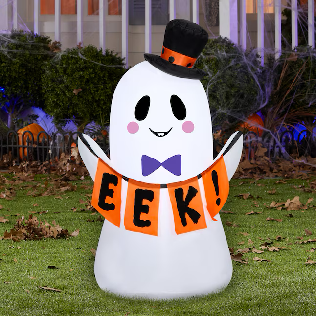 Haunted Living Item #5747148 | Model #553993Haunted Living 3-ft LED Ghost with EEK Sign Inflatable