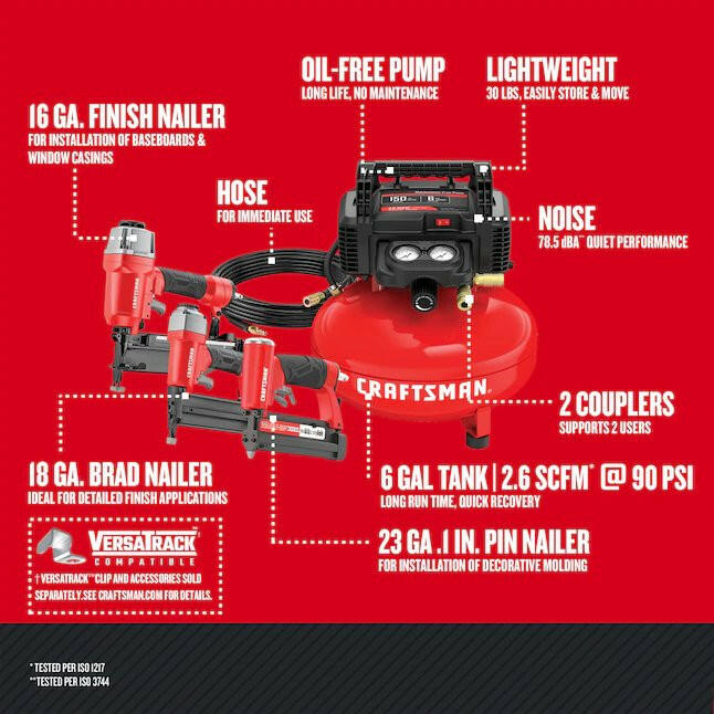 Craftsman Item # 91223111 | Model # CMEC3KITPNCRAFTSMAN 6-Gallon Single Stage Portable Corded Electric Pancake Air Compressor with Accessories (3-Tools Included)