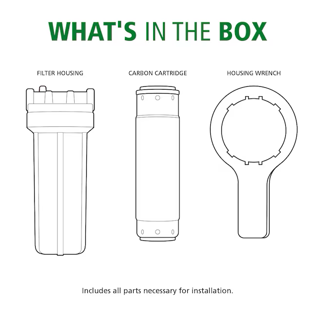 Includes filter housing, first filter, mounting bracket, housing wrench and all parts necessary for installation