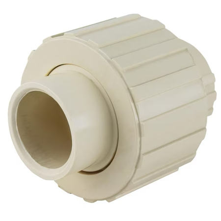 This union solvent welds directly to CPVC tubing and provides a method for future disassembly of tubing without cutting.