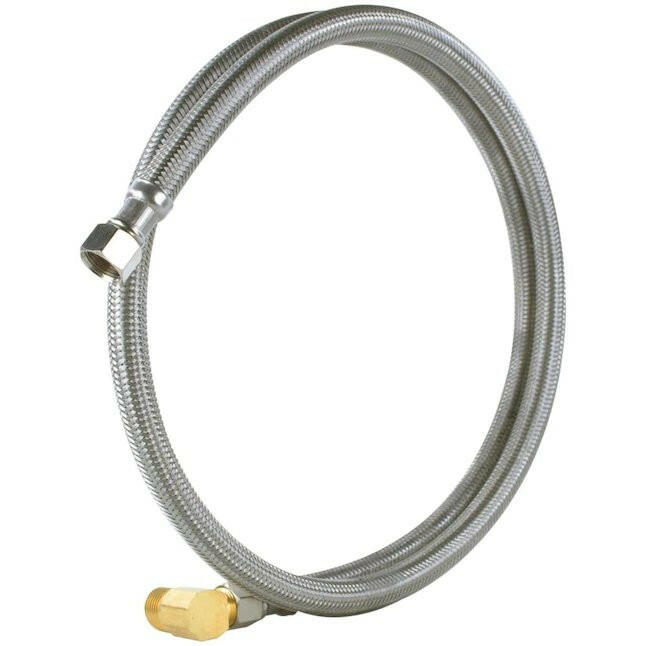 • 6ft braided premium stainless steel dishwasher hose with permanently attached stainless steel couplings and brass stems; 3/8-in FCM (Female Compression) x 3/8-in FCM with attached 3/8-in MIP (Male Iron Pipe) brass elbow