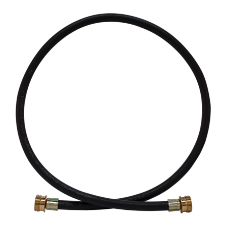 This Eastman® 3-foot Rubber Washing Machine Supply Hose Extension is made of black rubber with brass nuts, used to connect hot and cold water supply lines to the washing machine. The flexible hose is able to withstand high pressure and corrosion. The construction materials prevent leaking, kinking, and crimping. 3/4-inch male hose thread x 3/4-inch male hose thread connection. This durable heavy-duty extension hose is reliable for many hours.