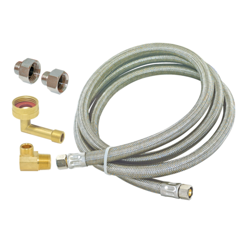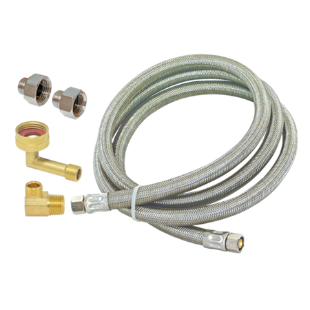 • Inlcudes: (1) braided stainless steel dishwasher supply line, (1) 1/2 in. Comp adapter, (1) 1/2 in. FHT adapter, (1) 3/8 in. MIP elbow, (1) 3/4 in. FHT elbow