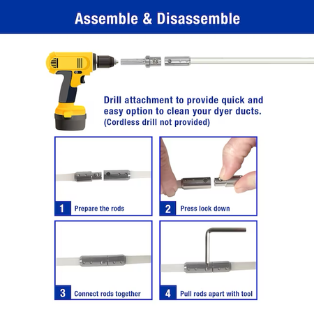 Rotating action of the auger brush and flexible rods scours your entire vent wall surface while traversing the multiple turns that are common in most dryer vent systems