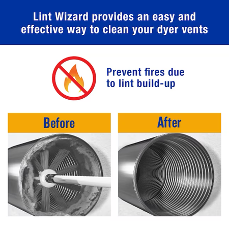 Helps prevent dryer fires by removing lint buildup in the exhaust vent, lint trap and around dryer